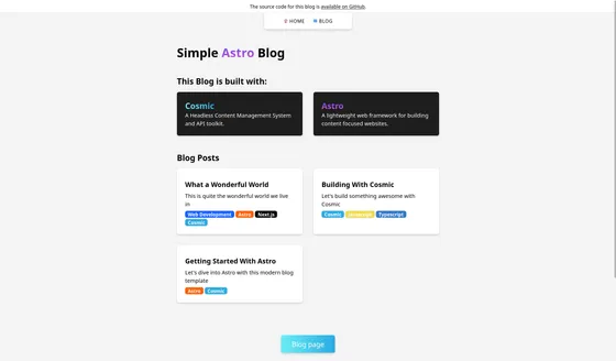 Section titled Building a Blog with Astro and CosmicYou can manage your Astro blog’s content using Cosmic and create webhooks to automatically redeploy your website when you update or add new content.